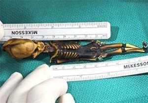 بقایای مویایی شده که 15 سانتی متر است در صحرای آتاکاما در شیلی.